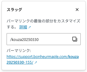 最初はタイトルがスラッグとなっているので、スラッグ名をわかりやすい単語でローマ字で入れます。